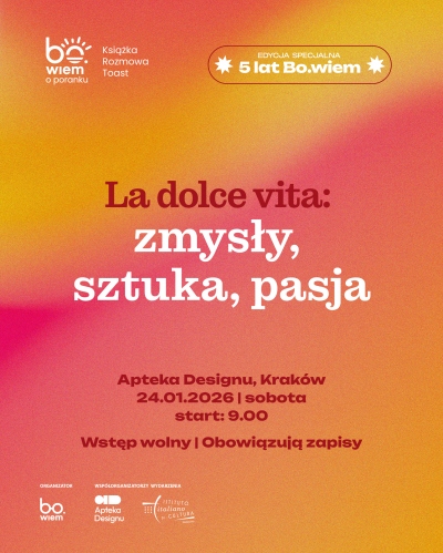 Pragniemy, aby w tej rozmowie, obok wątków kulinarnych czy artystycznych, pojawił się silny kontekst literacki i humanistyczny. Dlatego do dyskusji zaprosiliśmy wyjątkowych gości. Liczymy na to, że będą ze sobą nie tylko merytorycznie dyskutować, ale i - jak na włoski temperament przystało – pięknie się sprzeczać!